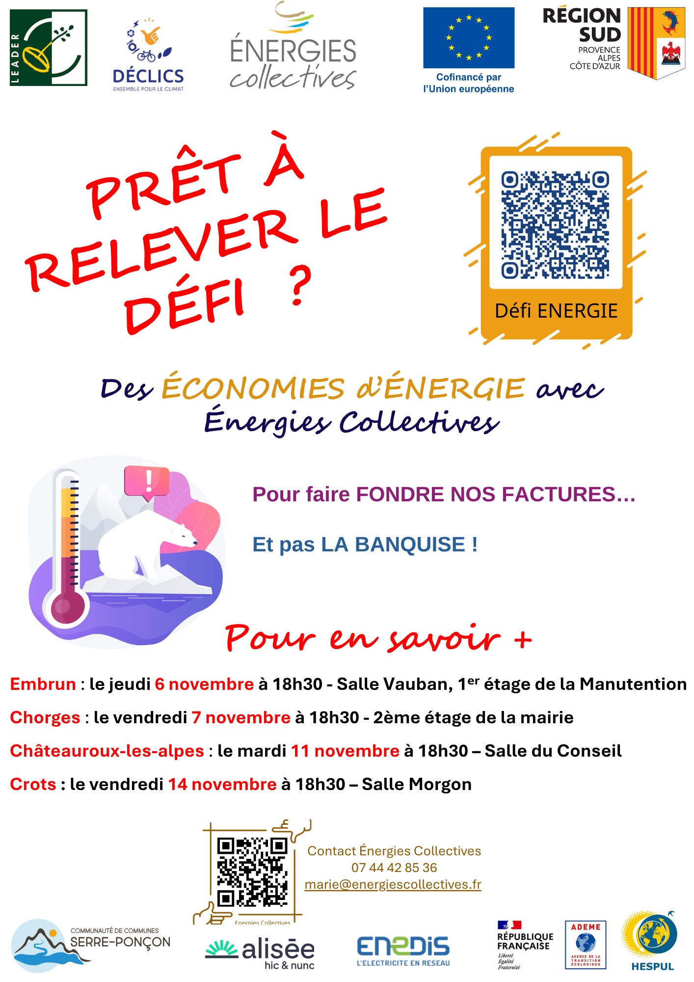 Réduire ses factures sans faire fondre la banquise : tel est le mot d’ordre du Défi Déclic Économies d’Énergie, lancé cette année sur le territoire de la Communauté de Communes de Serre-Ponçon. Il est animé par la coopérative Énergies Collectives et cofinancé par l’Union Européenne et la Région Provence Alpes Côte d’Azur.
